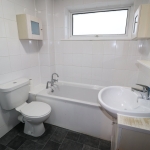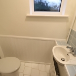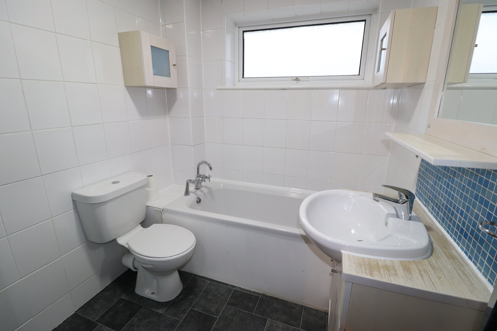 Two piece white suite comprising of low level WC. Hand wash basin with stainless steel mixer taps. Radiator. Tiled floor. UPVC double glazed obscure window to side aspect. Light overhead.