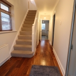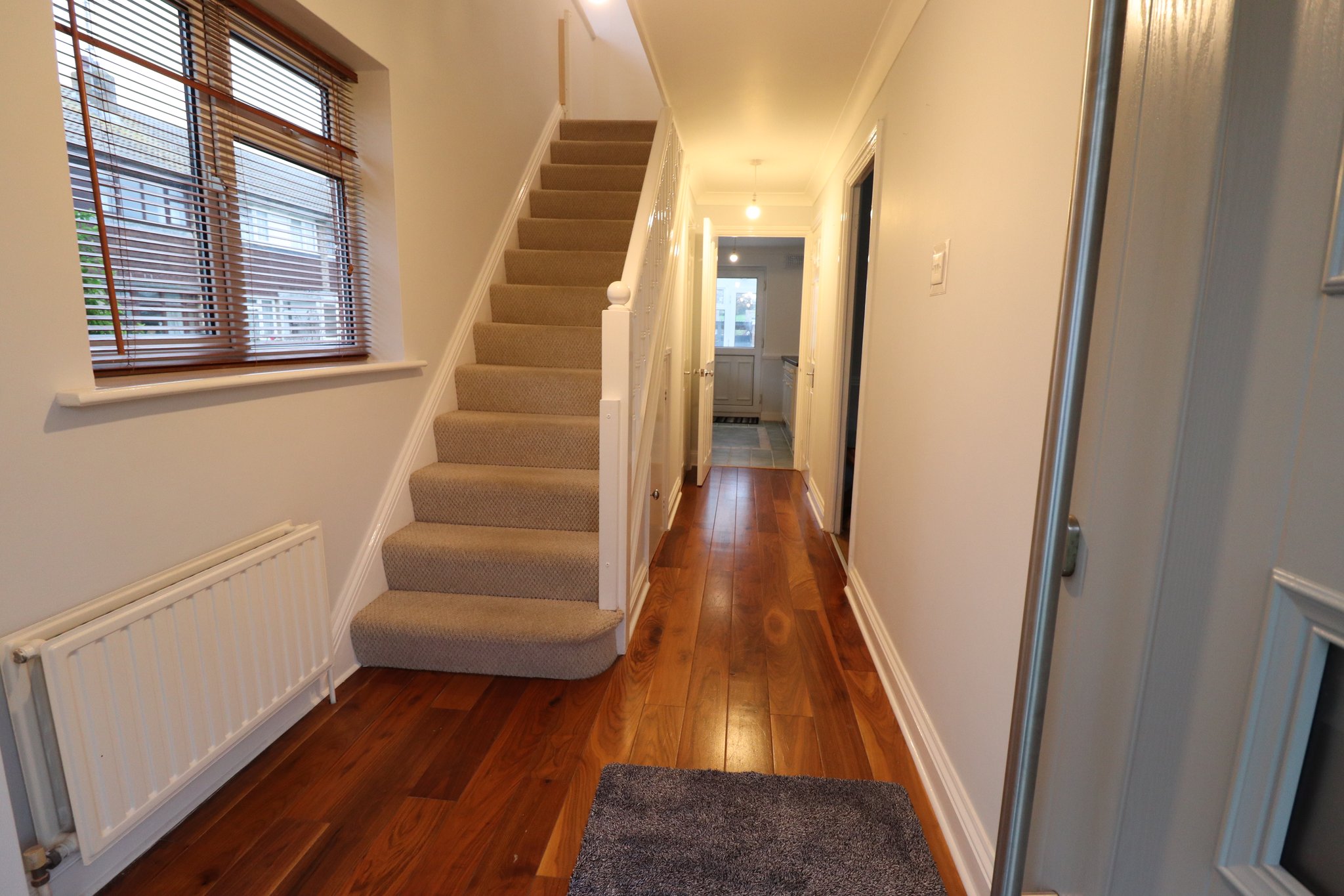 Accessed via a composite front door with UPVC double glazed obscured window panels inset leading through to a spacious hallway. Wood effect flooring. Radiator. Smooth plastered & coved ceiling. Built in corner storage unit housing Electric meter and fuseboard. Telephone point. Power point. deep understairs storage cupboard. Plus additional deep built in storage cupboard. Stairs to first floor landing. UPVC double glazed window to side aspect. Ample space for coat and shoe storage.