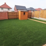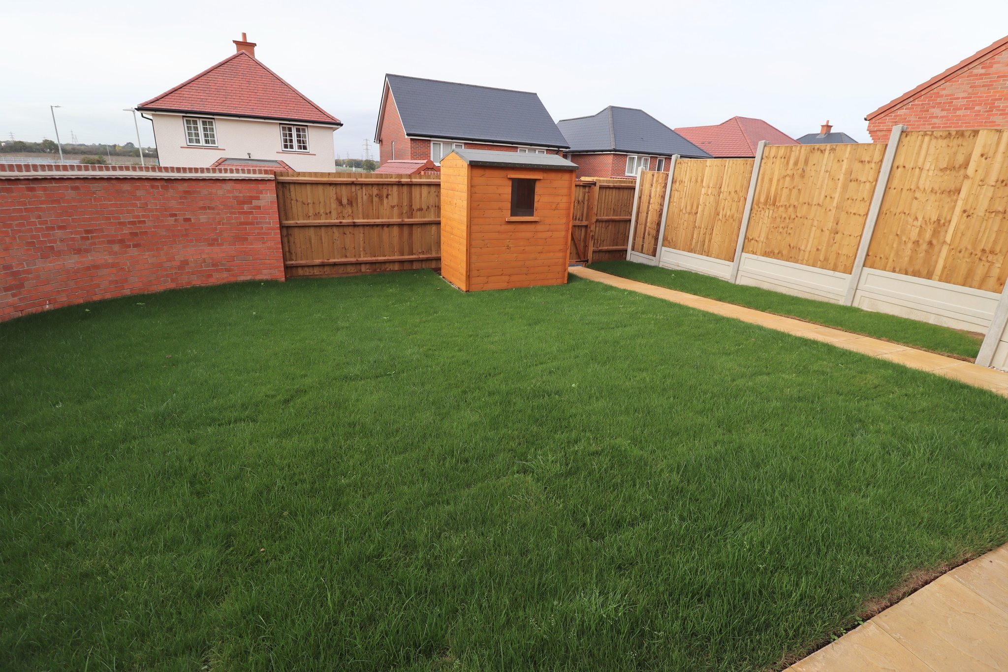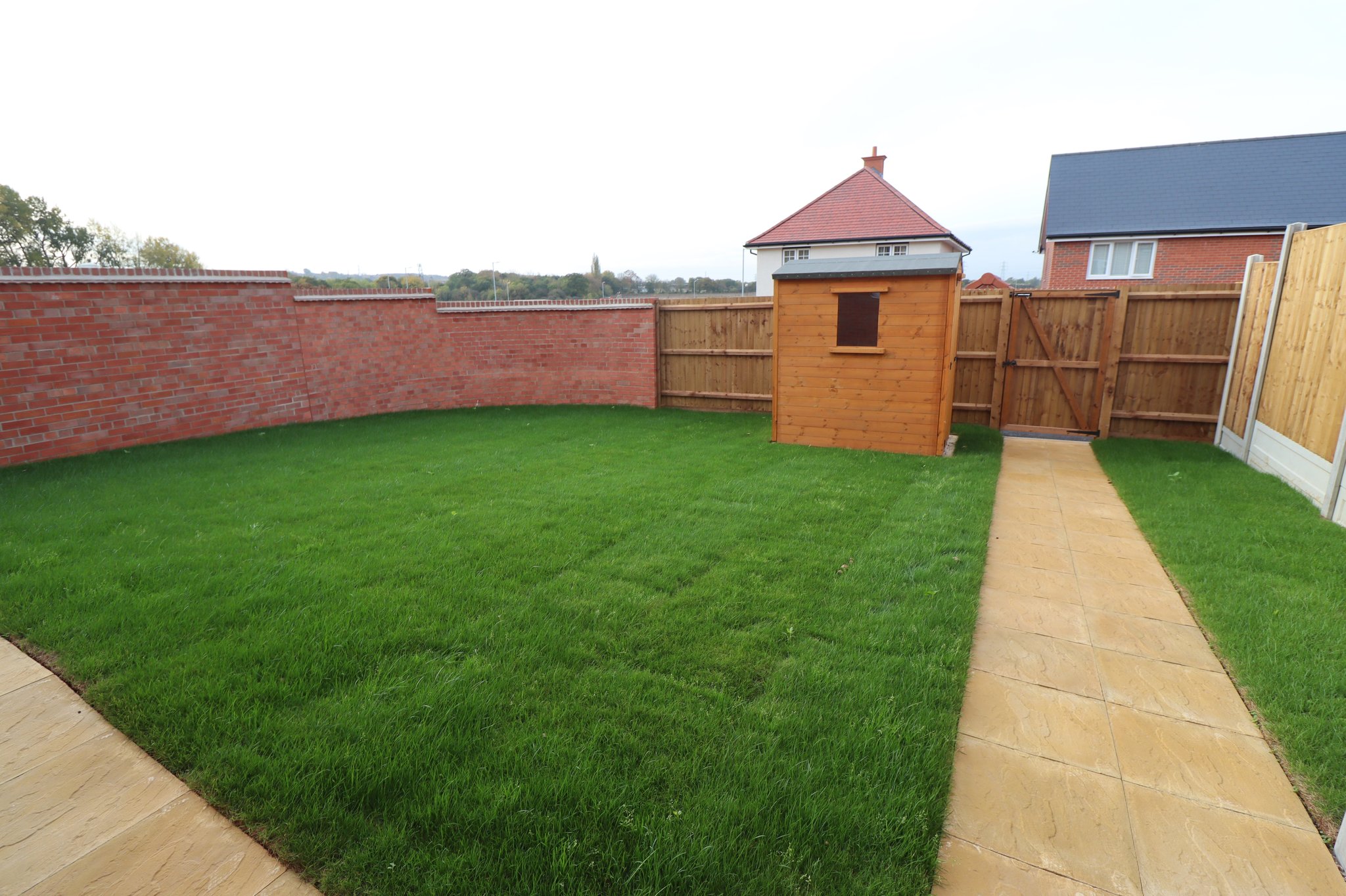 Mainly lawned. Part walled and fenced boundaries. Gate to off Road parking area to rear.
