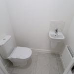 Push flush WC and wall mounted basin. Luxury Vinyl Floor Tiles.