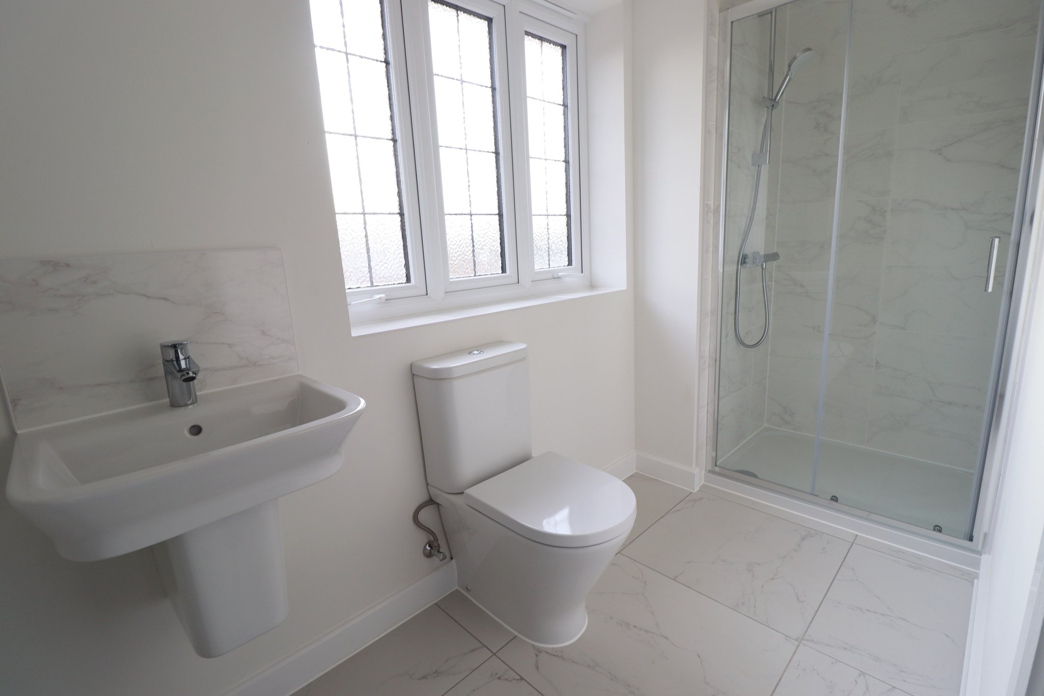 10' 7" x 4' 2" (3.23m x 1.27m) Double glazed window. Suite comprises; Double shower cubicle with thermostatic mixer shower inset. Push flush WC and wall mounted wash basin. Luxury Vinyl Floor Tiles.