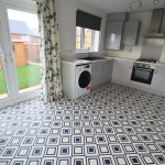16' 2" x 10' 5" narrows to 8' 9" (4.93m x 3.17m) Full fitted kitchen with appliances included. The appliances include; Integral fridge freezer, gas hob, integral electric oven, integral dishwasher and freestanding Washing machine. Luxury Vinyl Floor Tiles throughout. Double opening patio doors to garden. Dual aspect windows.