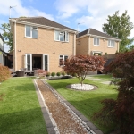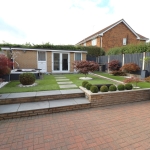 Westerly facing landscaped garden commences with a block paved patio area with dual side access to the front of the property. Porcelain tiled steps with brick fascia rising to main garden area. Neatly landscaped and finished with porcelain stepping stones and artificial lawn. Feature decked area with space for sunken hot tub. Range of mature Asia's and maple trees. Water feature with inset stone finish and sunken fishpond. Timber fenced boundaries.