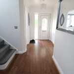 12' 4" x 5' 7" expanding to 10'4'' into staircase. Smooth plastered coved ceiling with ceiling light point and mains wired smoke alarm. Wall mounted panelled radiator. Built in understairs storage cupboard. Wood laminate flooring laid throughout. Carpeted return staircase rising to first floor.