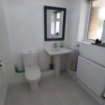 6' 3" x 5' 10" (1.91m x 1.78m) Obscure UPVC double glazed window to front aspect. Smooth plastered ceiling. Wall vented extractor. Suite comprises of a large pedestal washbasin with mixer taps and tiled splashbacks. Push flush WC. Ceramic tiled flooring. Wall mounted panelled radiator.