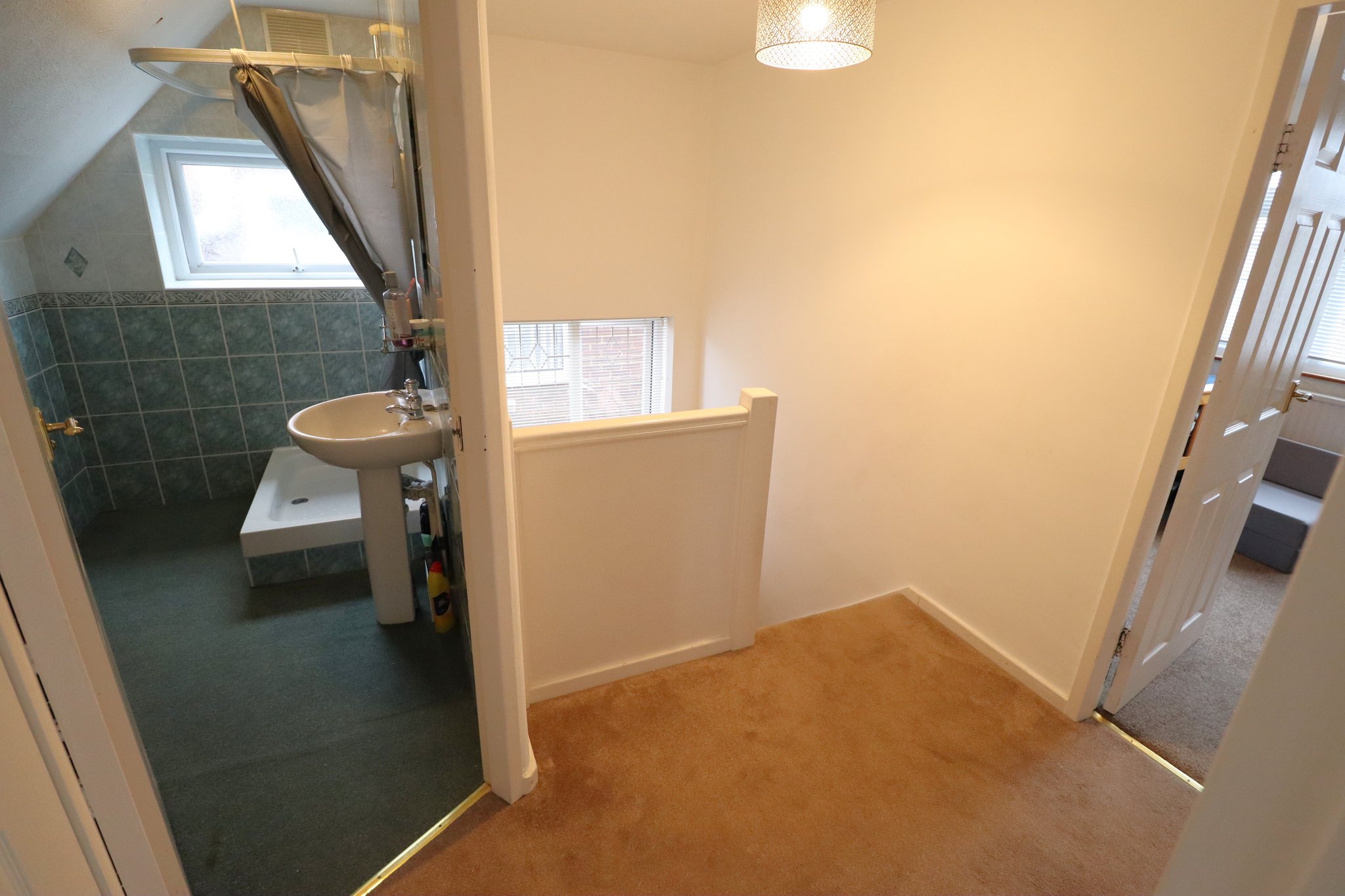 8' 9" x 5' 0" (2.67m x 1.52m) Obscure UPVC double glazed window to side aspect. Ceiling light point. Wall mounted extractor vent. Full ceramic tiled walls. Wall mounted panelled radiator. Eaves storage cupboard. Suite comprises a thermostatic Electric shower and pedestal washbasin.
