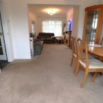 15' 1" x 10' 5" narrowing to 9'5''. Dual access from dining room and hallway. Coved ceiling with ceiling light point. Wall mounted panelled radiator. Centred gas fireplace with marble hearth. Carpeted throughout. Square archway opening to dining room.