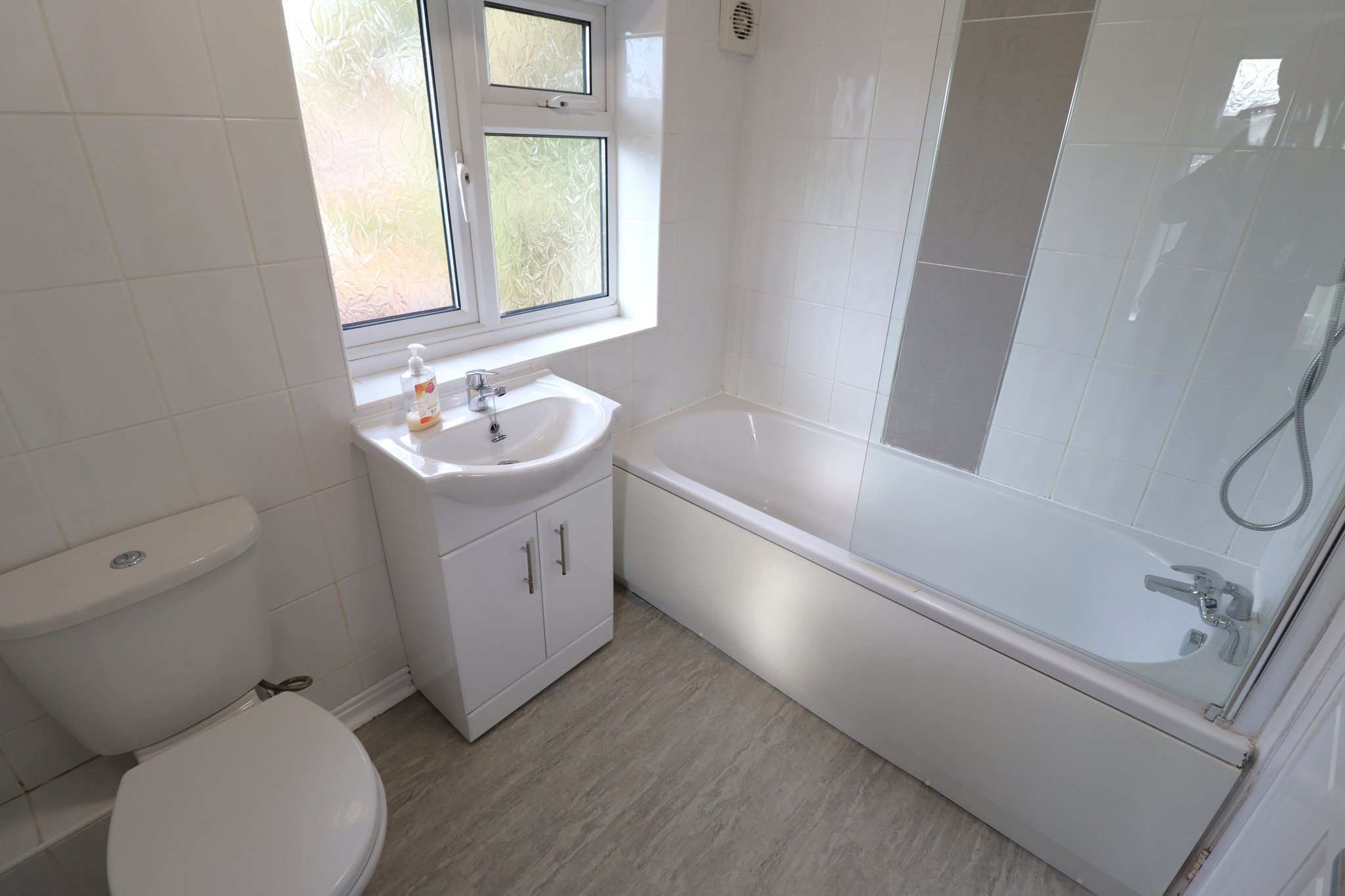 Fully tiled bathroom. UPVC double glazed window to rear aspect. Panelled bath with mixer shower over. Pedestal wash basin. Push flush WC. Wall mounted panelled radiator.