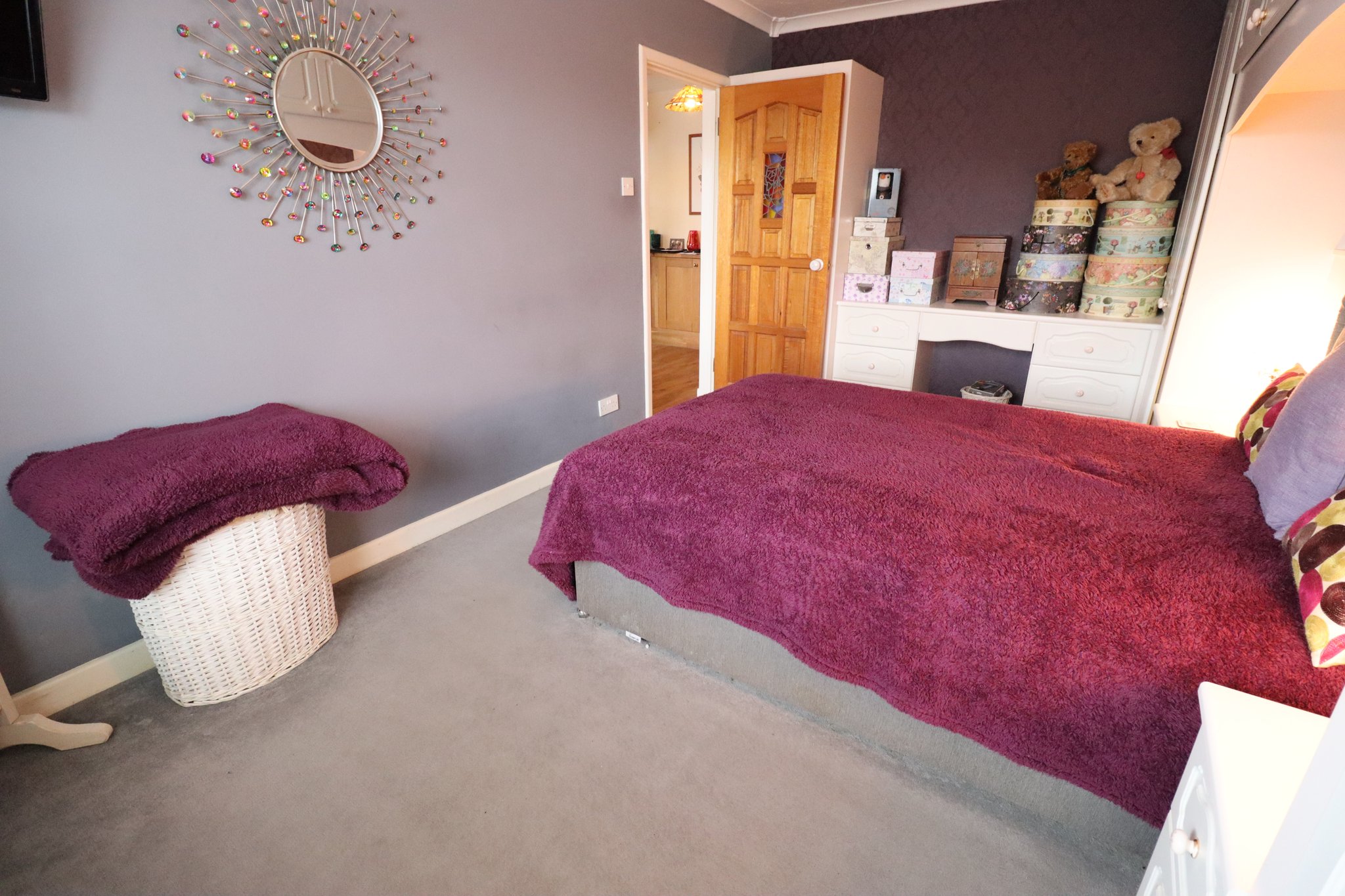 13' 5" x 13' 8" (4.09m x 4.17m) UPVC double glazed window to front aspect from original bedroom two. Wall mounted panelled radiator. Ceiling light point to smooth plastered ceiling. Additional two ceiling light points. Access to loft via pull down loft hatch with fitted loft ladder. Wall mounted heating thermostat. Oak fitted feature storage unit.