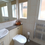 10' 2" plus recess x 9' 11" (3.10m x 3.02m) UPVC double glazed window to side aspect. UPVC double glazed corresponding door opening to garden. Smooth plastered coved ceiling with ceiling light point. A range of wall mounted and base level kitchen cabinet unit finished with Oak doors. Wall mounted panelled radiator. Built in concealed Valliant Combi boiler. Remainder of kitchen comprises of ceramic tiled splashbacks and rolled edge worktops incorporating a twin stainless steel sink with mixer tap. Free standing electric cooker. Space & plumbing for washing machine and additional under unit appliance. Vinyl flooring laid throughout.