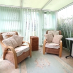 9' 10" x 8' 4" (3.00m x 2.54m) UPVC double glazed conservatory with semi translucent sloping poly-carbonite roof. Wall mounted light points x 2. Vinyl flooring throughout. Door opening to garden.