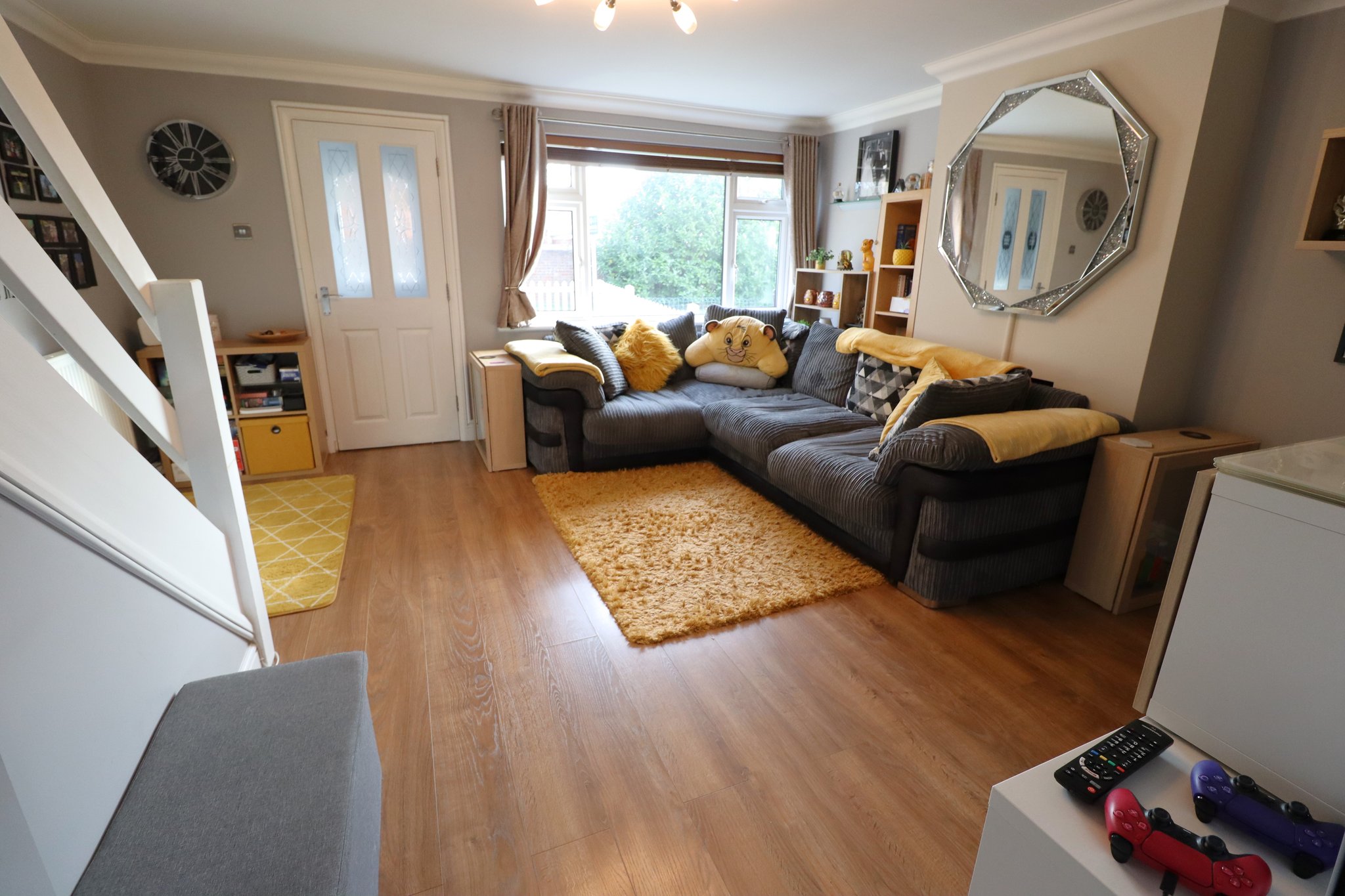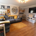 14' 8" x 14' 5" (4.47m x 4.39m) UPVC double glazed window to front aspect. Smooth plastered coved ceiling. Complimentary colour schemes throughout. Wall mounted panelled radiator. Wood laminate flooring throughout. Internal door with glazed inserts opens to kitchen diner.