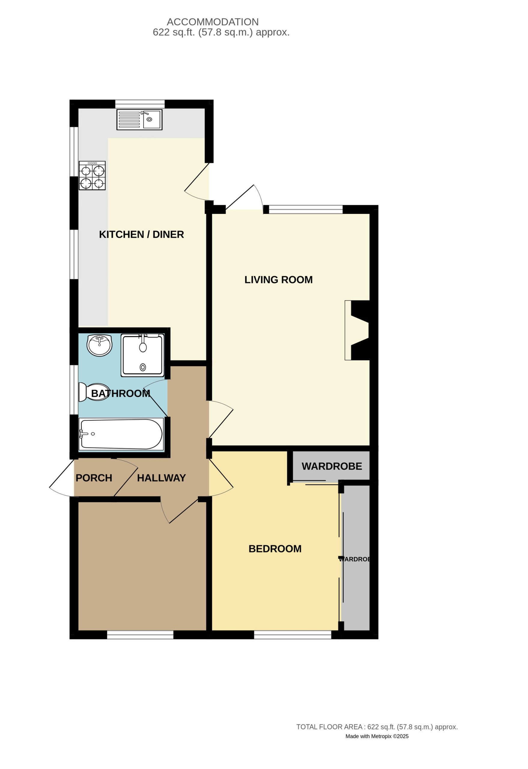 8' 4" x 5' 7" (2.54m x 1.70m) Obscure UPVC double glazed window to side aspect. Smooth plastered ceiling with inset spotlighting. Wall mounted extractor. Suite comprises of a panelled bath with mixer tap, push flush WC, corner glass shower cubicle with recently installed thermostatic mixer shower with rainfall showerhead and additional handheld hose. Wash basin with mixer tap inset to gloss finished vanity storage unit. Chrome heated towel rail. Wood effect vinyl flooring laid throughout. Ceramic wall tiles, mainly at half height, extending to full height into shower cubicle.