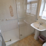 7' 4" x 5' 5" (2.24m x 1.65m) Obscure UPVC double glazed window to side aspect. Ceiling light point. Ceramic tiled walls with wall vented extractor and shaver point. Wall mounted chrome heated towel rail. Suite comprises of an open ended shower cubicle with Electric Mira shower and glass shower screen. Pedestal wash basin with mixer tap and close coupled WC. Tile effect vinyl flooring throughout.