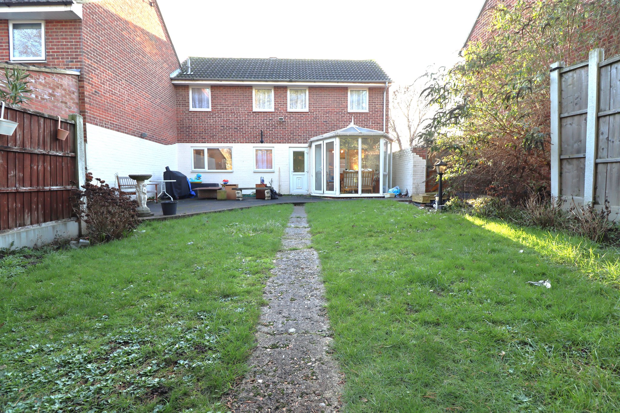 Commences with a large patio area with gated side access to the front of the property. Timber fenced boundaries. Sunken fish pond. Established conifers to the far end of the garden with the remainder mainly lawn.