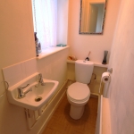 5' 1" x 2' 5" (1.55m x 0.74m) Obscure UPVC double glazed window to rear aspect. Smooth plastered ceiling with ceiling light point. Suite comprises of a close coupled push flush WC and suspended wash basin. Wall mounted panelled radiator. Vinyl parquet effect flooring throughout.