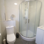 6' 1" x 5' 9" (1.85m x 1.75m) Smooth plastered ceiling with ceiling light point. Obscure UPVC double glazed window to rear aspect. Corner shower cubicle with thermostatic mixer shower inset. Ceramic tiled walls and flooring. Wash basin with mixer tap inset to vanity storage unit. Close coupled push flush WC. Chrome heated towel rail.
