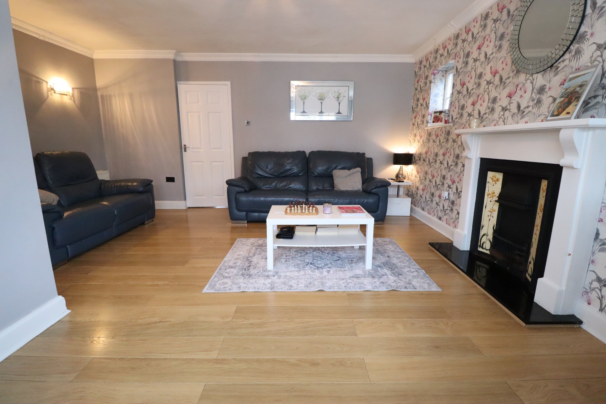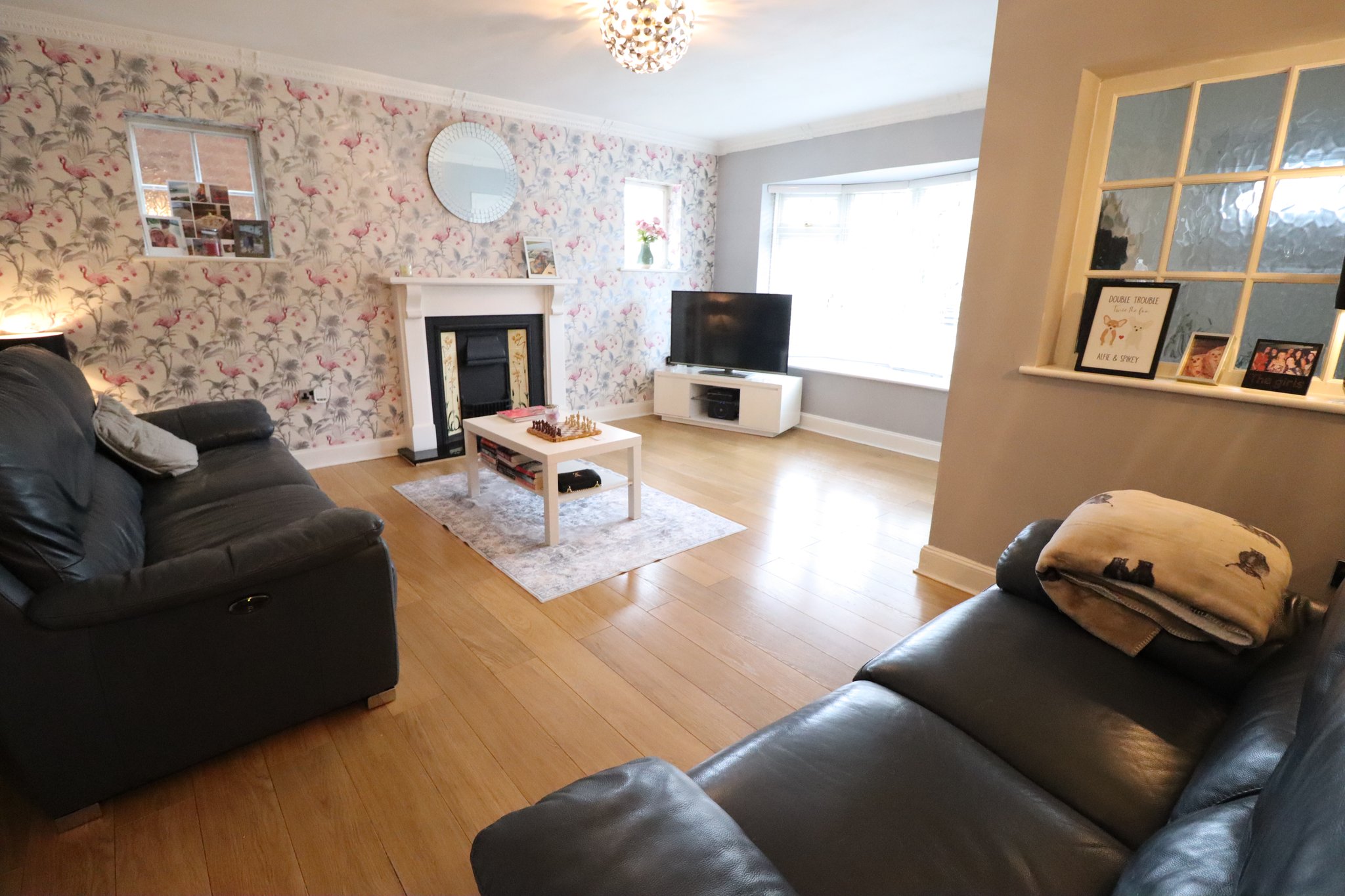 16' 2" maximum - narrowing to 10' 8" x 15'10'' UPVC double glazed bay window to front aspect. Smooth plastered corniced ceiling with ceiling light point pint and two additional wall mounted light points. Wall mounted double banked panelled radiator. Twin UPVC double glazed windows to side aspect. Feature Victorian style cast iron ornamental fireplace inset to granite hearth. Wood laminate flooring laid throughout. Doorway through to inner lobby.