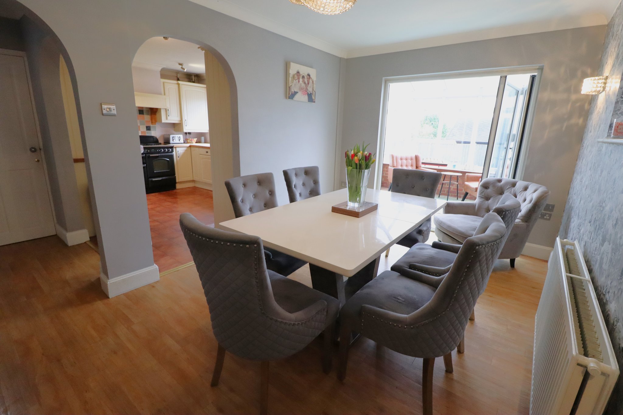 15' 10" x 9' 1" (4.83m x 2.77m) Obscure UPVC double glazed window to side aspect. UPVC double glazed bifold door opening to conservatory. Smooth plastered coved ceiling with ceiling light point. Wall mounted double banked panelled radiator. Archways to internal lobby and kitchen.