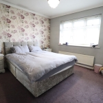 12' 11" x 12' 9" (3.94m x 3.89m) UPVC double glazed Georgian style window to front aspect. Smooth plastered coved ceiling with ceiling light point. Wall mounted panelled radiator. Fitted wardrobes with overhead storage area and alcove inset for dressing table, drawers, television etc. Carpet laid throughout.