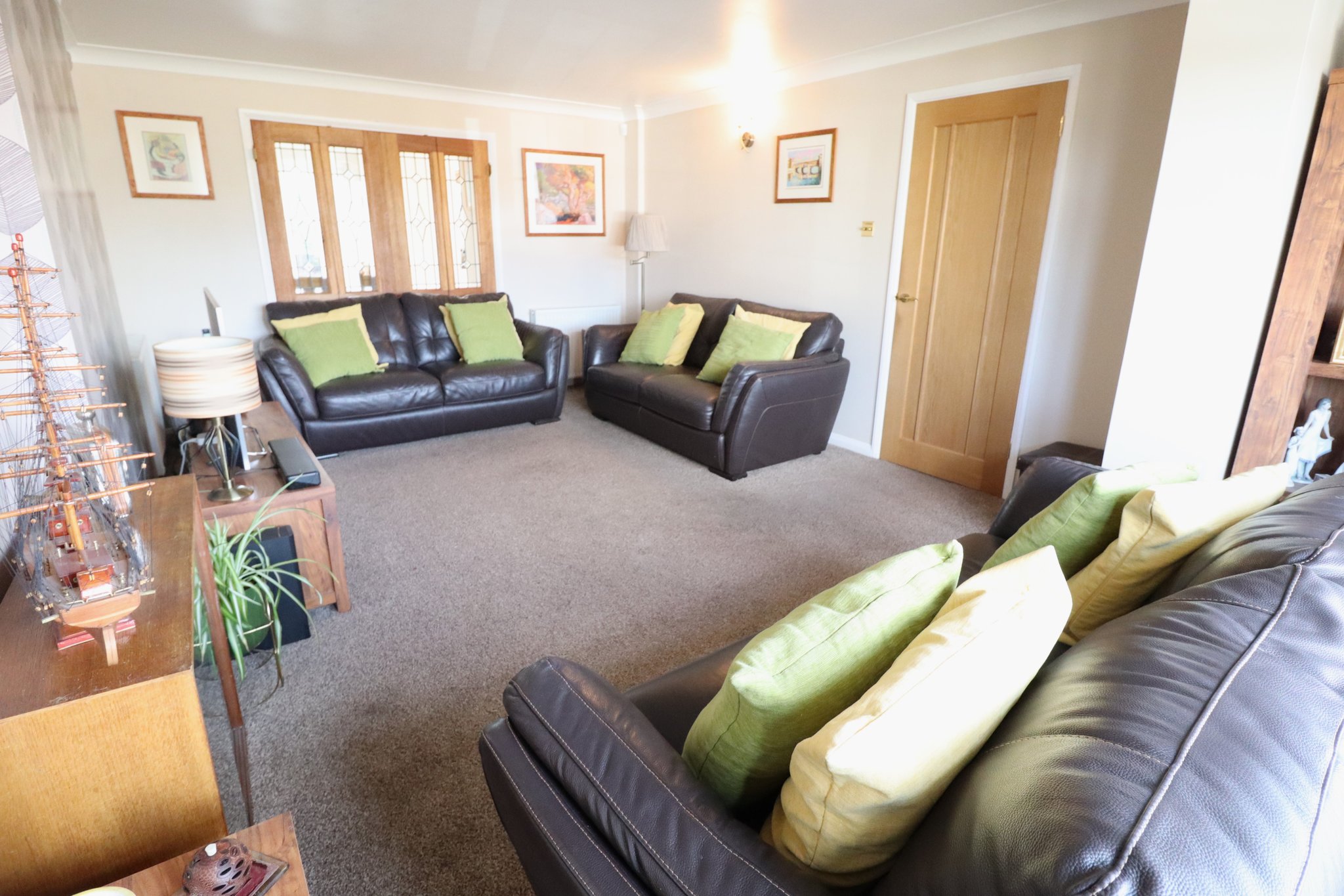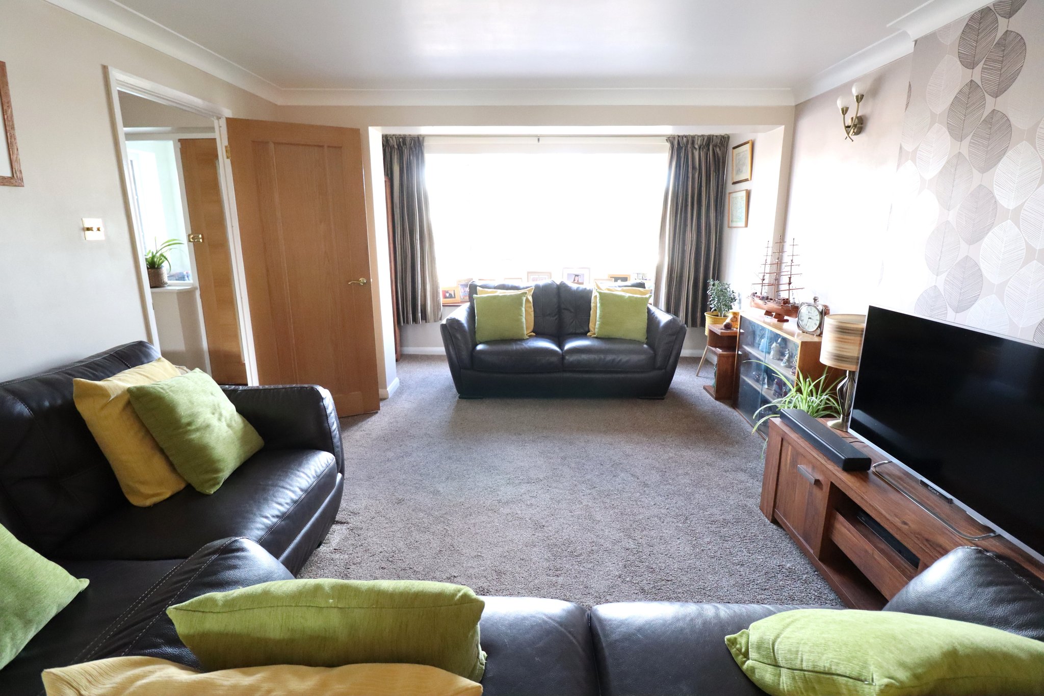 20' 0" x 11' 10" (6.10m x 3.61m) Lovely large bay window to front affording plenty of natural light; Carpeted flooring; Radiator; Wall light fittings; Oak entrance door; Glass panel double doors to kitchen/dining.