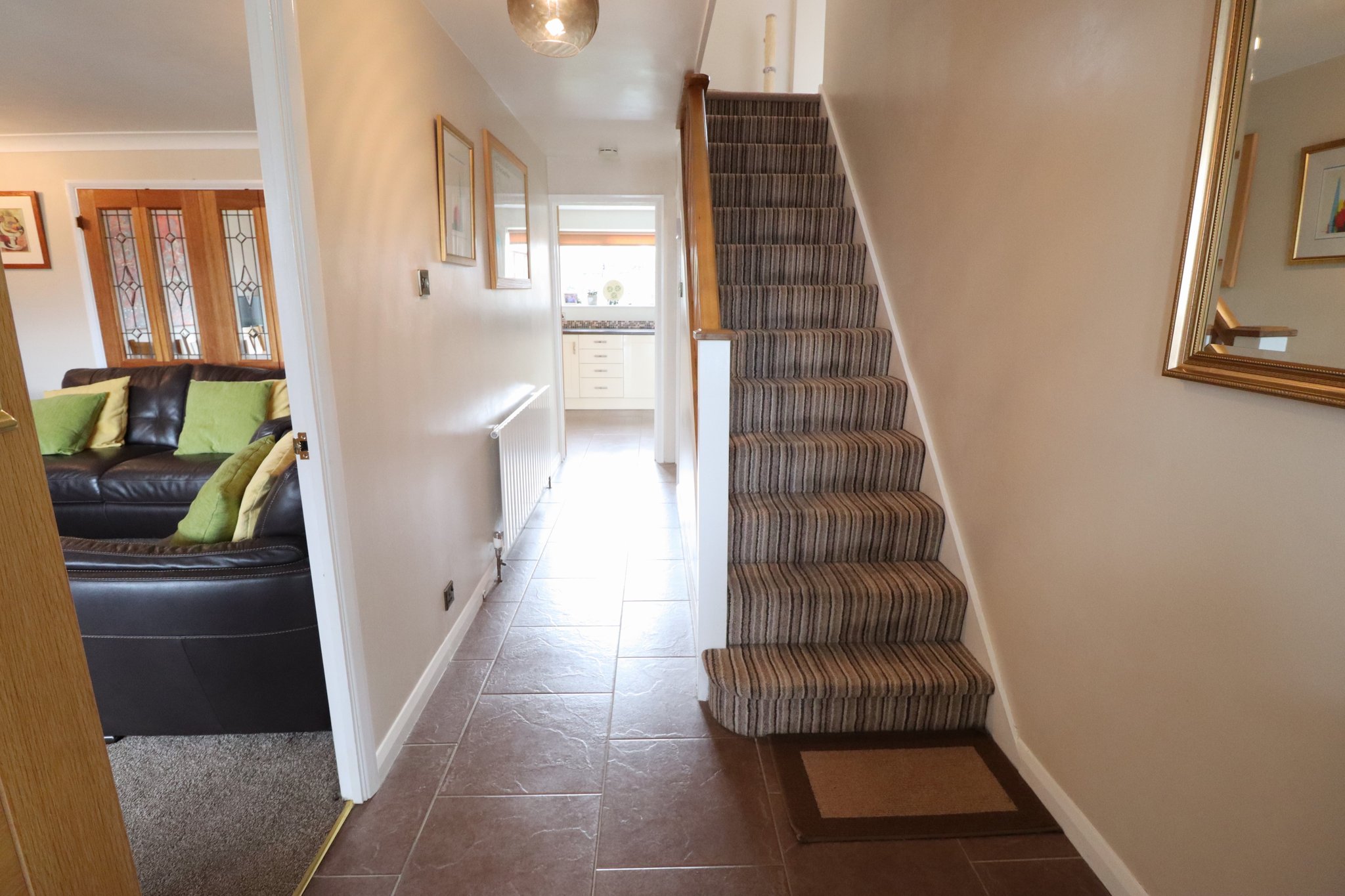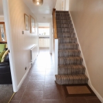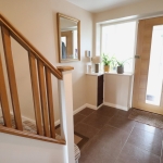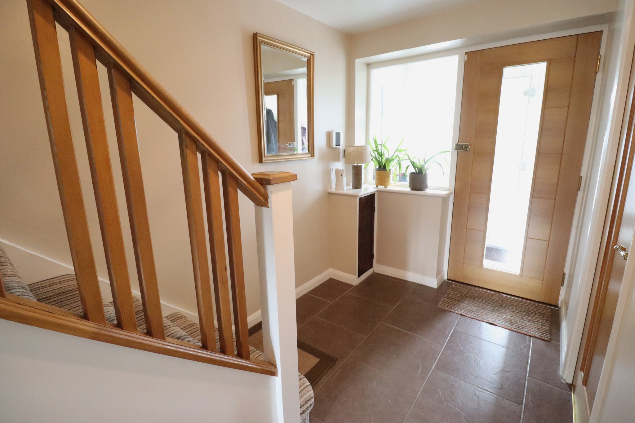 17' 0" x 6' 0" (5.18m x 1.83m) Oak entrance door with central glass panel; Tiled flooring throughout; Double glazed window; Radiator; Ceiling light fitting. Doors to: Living, Kitchen/Dining, Shower Room. Carpeted stairs to upper floor.