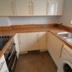 8' 4" x 7' 6" (2.54m x 2.29m) UPVC double glazed Georgian style window to front aspect. Ceiling light point. Modern gloss kitchen comprises a range of wall mounted and base level kitchen cabinet & drawer units with monobloc style walnut effect rolled edged worktops. Incorporating a stainless sink unit with mixer tap & drainer, four ring electric hob with integral electric fan assisted oven & grill combo beneath. Amtico floor tiles. Space & plumbing for under counter washing machine (to remain) Space for free standing fridge/freezer (to remain).