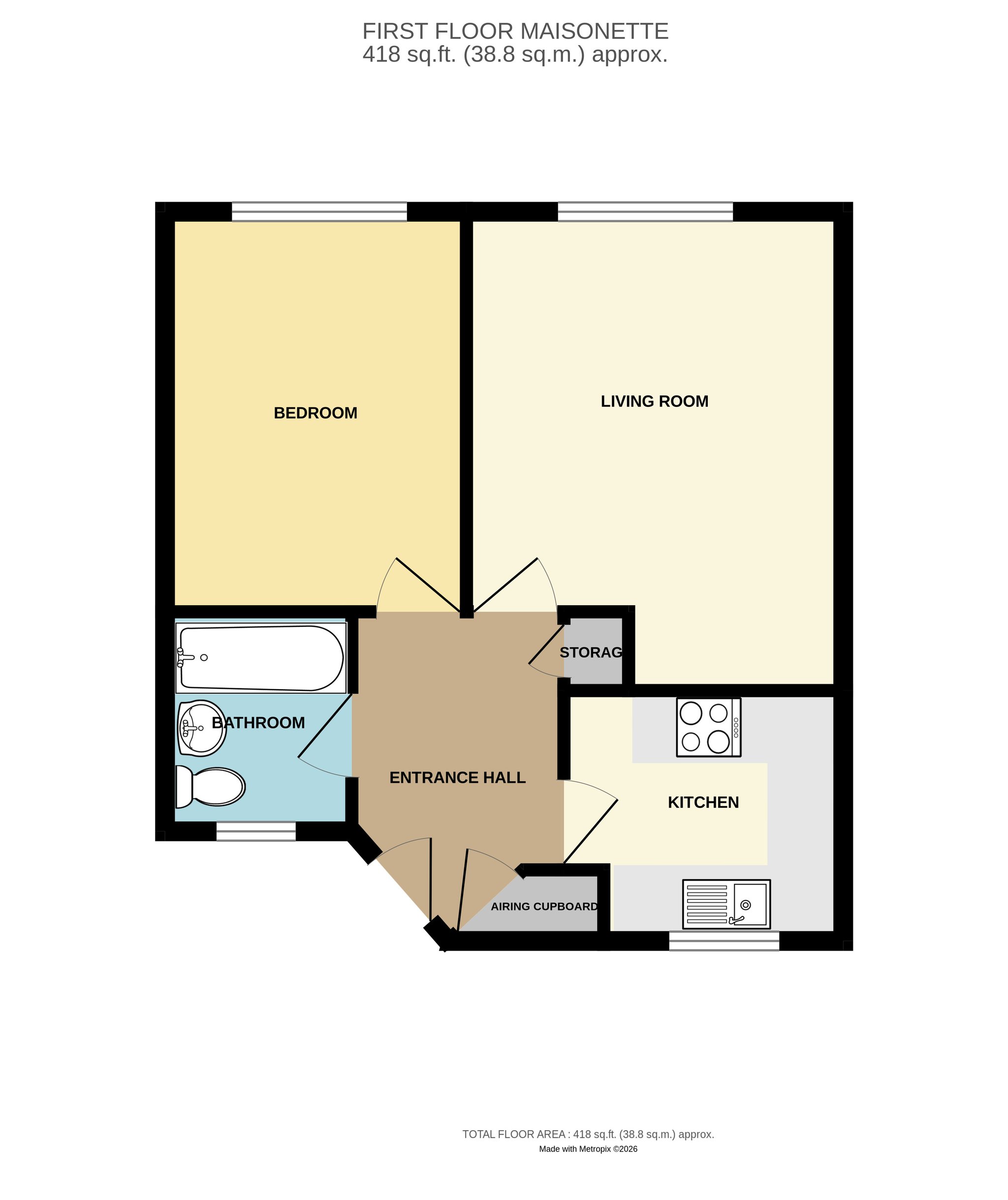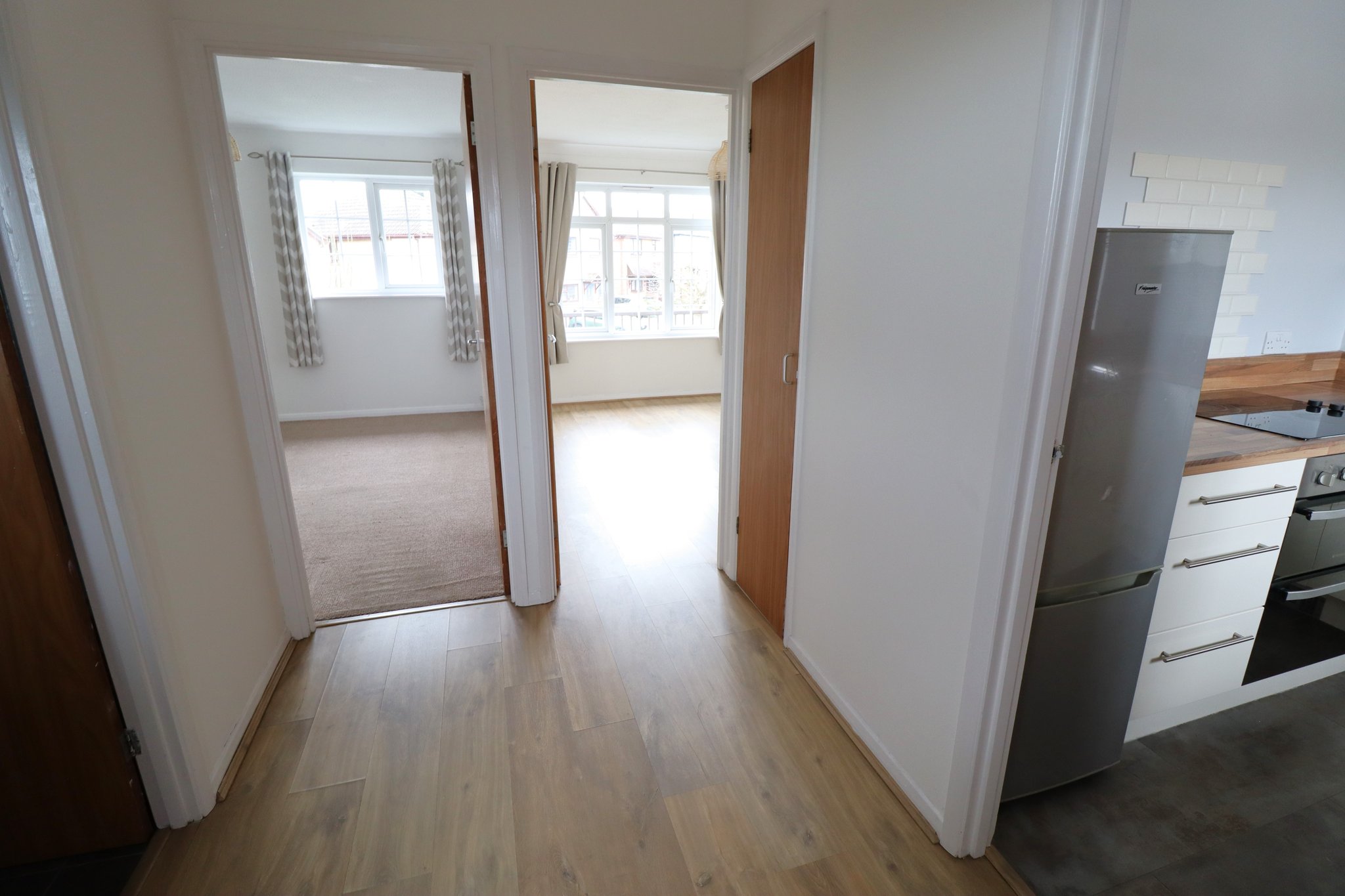 9' 5" x 5' 9" (2.87m x 1.75m) Pull down loft hatch with fitted loft ladder to a boarded loft. Ceiling light point. Wood laminate flooring laid throughout. Two built in storage cupboards, one housing a recently installed (2026) pressurised hot water system and cylinder. Additional shelving for towels, linen etc. The other cupboard providing cloaks hanging and shoe storage space.