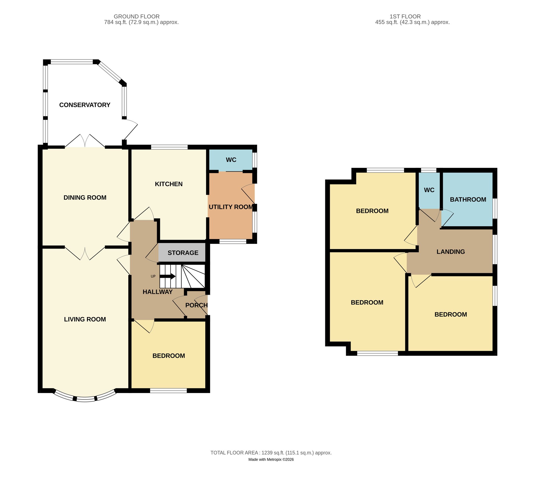 A charming family home boasting an abundance of natural light throughout, the ground floor comprises of: Spacious Living Room with Double Doors leading to the separate Dining Area, French Doors to Conservatory; Modern Kitchen leading to Utility Room and Cloakroom. The downstairs double bedroom provides an additional versatile room to suit your family’s needs as a Home Office/Bedroom/Games Room.
