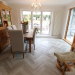 13' 0'' x 9'6'' DINING AREA: Feature aluminum bi-fold double glazed patio doors to garden, Smooth plastered coved ceiling with ceiling light point. Twin vertical contemporary wall mounted panelled radiators. Continuation of Amtico herringbone flooring from living room. Internal Oak bi-fold doors with glazed inserts through to Orangery.