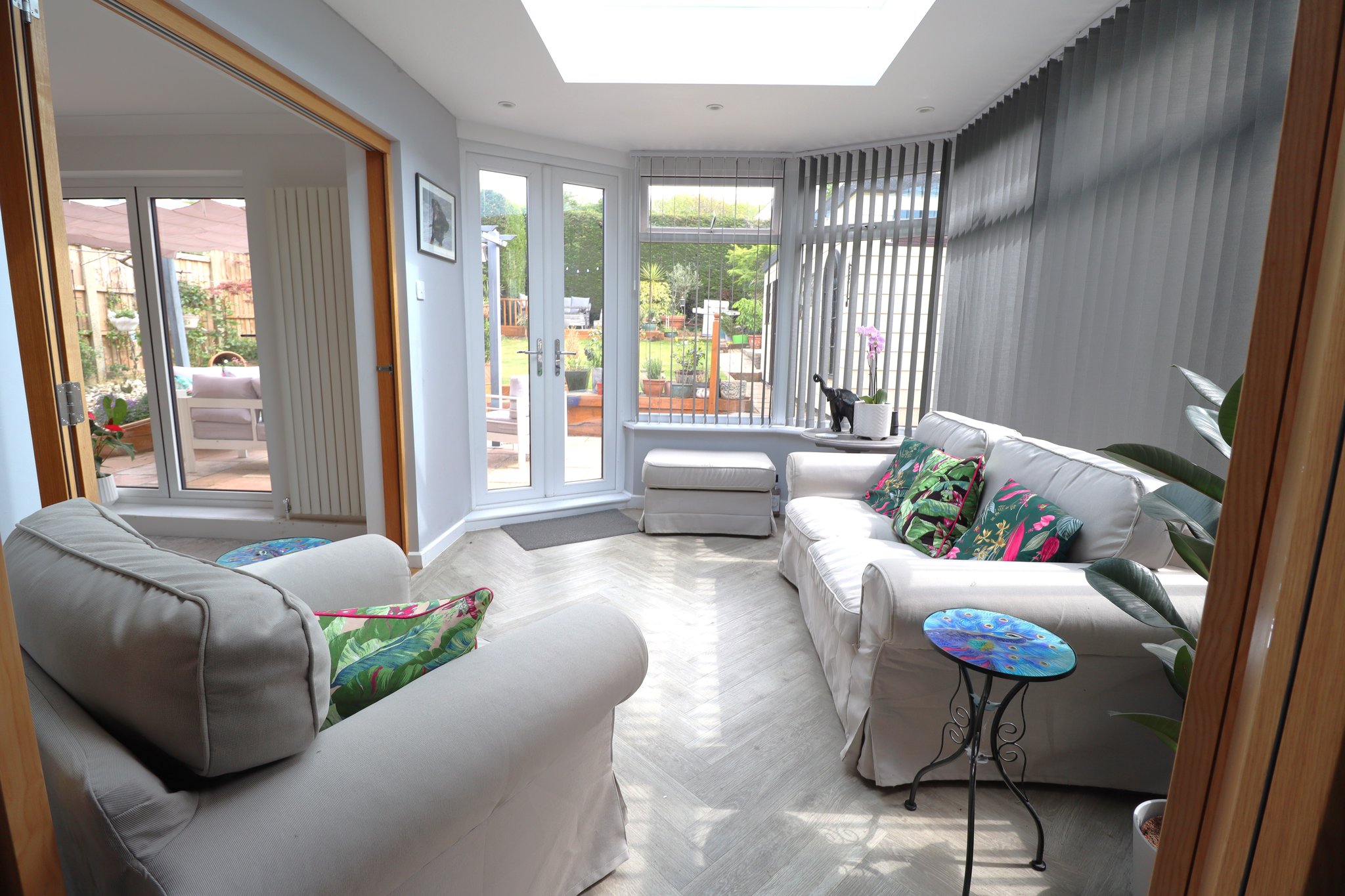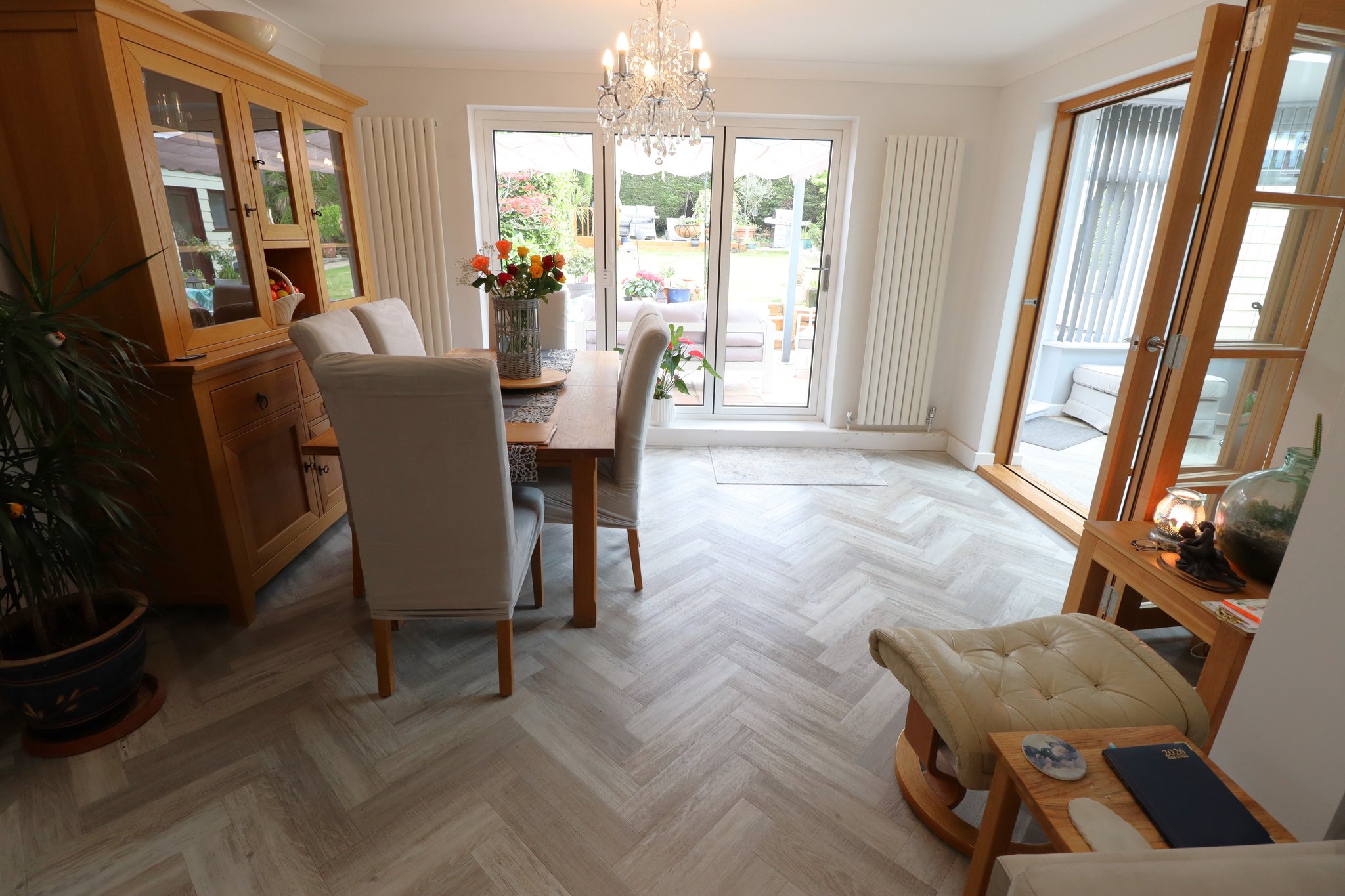 12' 5" x 9' 6" (3.78m x 2.90m) UPVC double glazed windows and patio doors opening to garden. Large UPVC double glazed roof latern. Smooth plastered ceiling with inset LED spotlights. Wall mounted contemporary vertical panelled radiator. Amtico herringbone LVT flooring throughout.