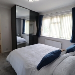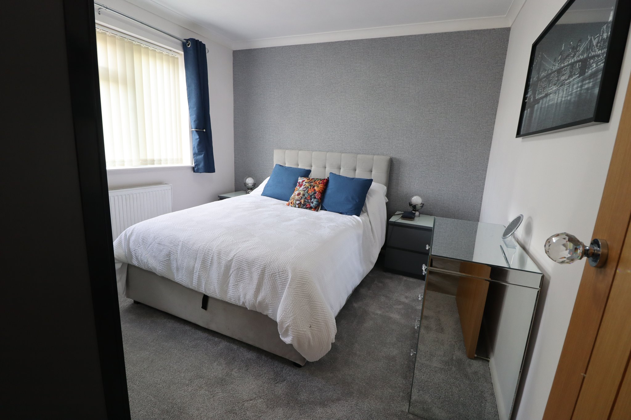 10' 11" x 9' 11" (3.33m x 3.02m) UPVC double glazed window to fornt aspect. Smooth plastered coved ceiling with ceiling light point. Wall mounted panelled radiator. Built in mirrored fronted contemporary wardrobe. Carpet laid throughout.