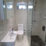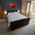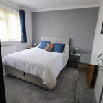 5' 5" x 5' 2" (1.65m x 1.57m) High level obscure UPVC double glazed window. Smooth plastered ceiling with inset LED spotlighting. Thermostatic underfloor heating. Suite comprises of a walk in shower enclosure with glass shower screen and thermostatic mixer shower inset with rainfall shower head and hand held hose. High gloss contempory tiled walls with feature glass tile vertical inlay. Contrasting shower base tiles with remaining of bathroom with porcelain tiled flooring. Push flush WC and suspended wash basin with mixer tap.