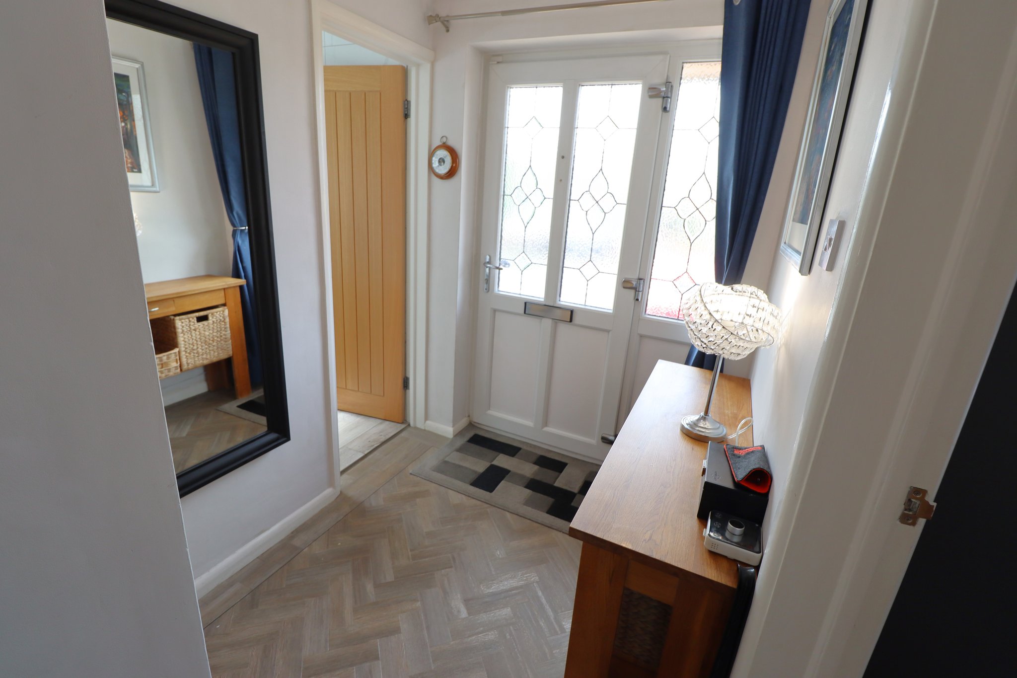 The property is approached via raodside with a drop kerb to a block paved driveway with side shrub flower bed. Access both sides and steps up to a composite double glazed entrance door into hallway.