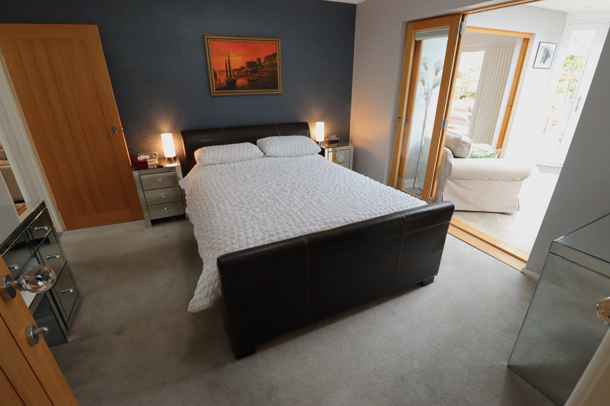 11' 10" x 11' 5" (3.61m x 3.48m) Dual access fromhallway via internal Oak door and feature fitted Oak bi-fold doors from orangery. Smooth plastered coved ceiling with ceiling light point. Wall mounted contemporary panelled radiator. Carpet laid throughout. Oak internal door to ensuite.
